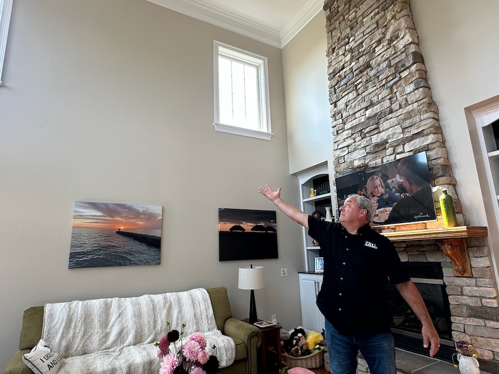 Anyone who has ever stood at the base of a two-story wall with a roller in hand knows the feeling: Where do I even start? Heights, awkward angles, and the need for consistent coverage across massive surfaces make these spaces some of the trickiest to tackle. Our clients knew that painting these areas themselves could mean uneven coverage, drips, roller marks, or worse—paint landing somewhere it definitely didn’t belong.