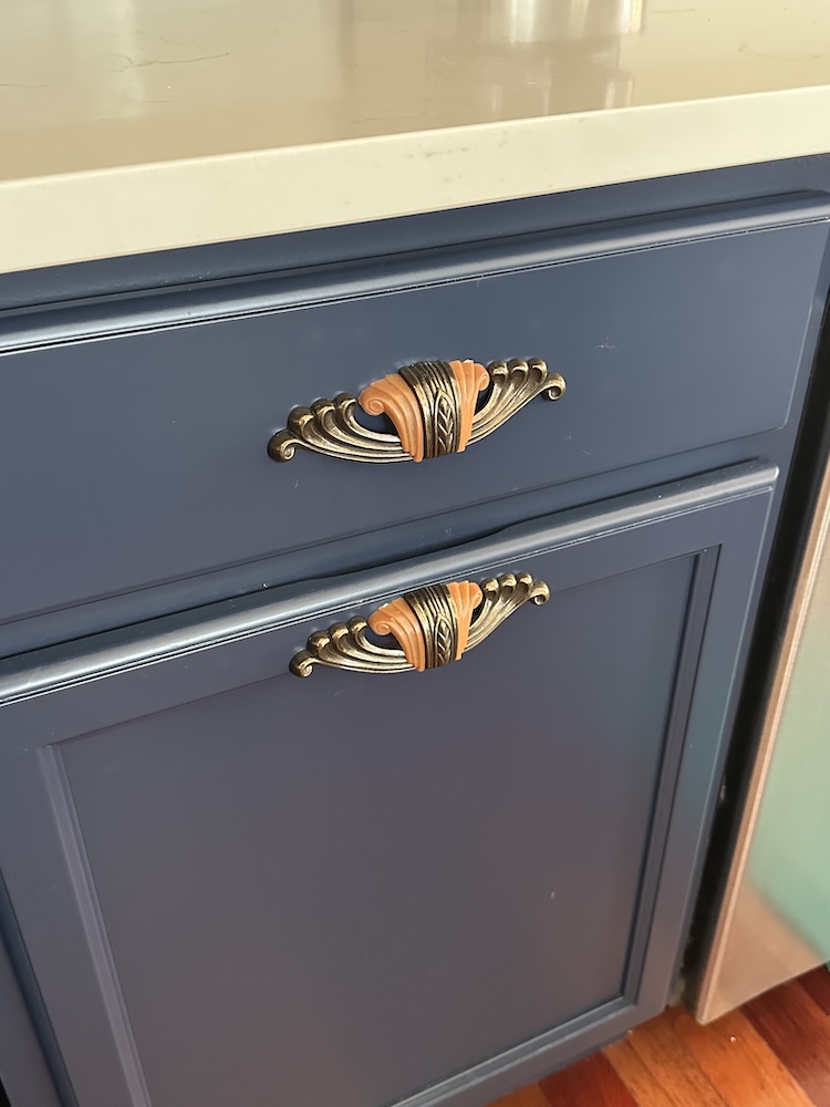 These weren’t just knobs and pulls; these were what our customer affectionately called her “jewelry.” Ornate, art deco–inspired pieces that added sparkle, contrast, and a serious dose of personality.