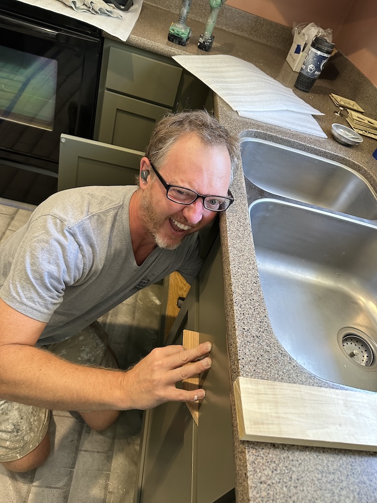 While we waited for the new doors to arrive, Lexy and Rich jumped on the lower section of the kitchen since those doors were already on hand. The product lineup was our tried-and-true combo: