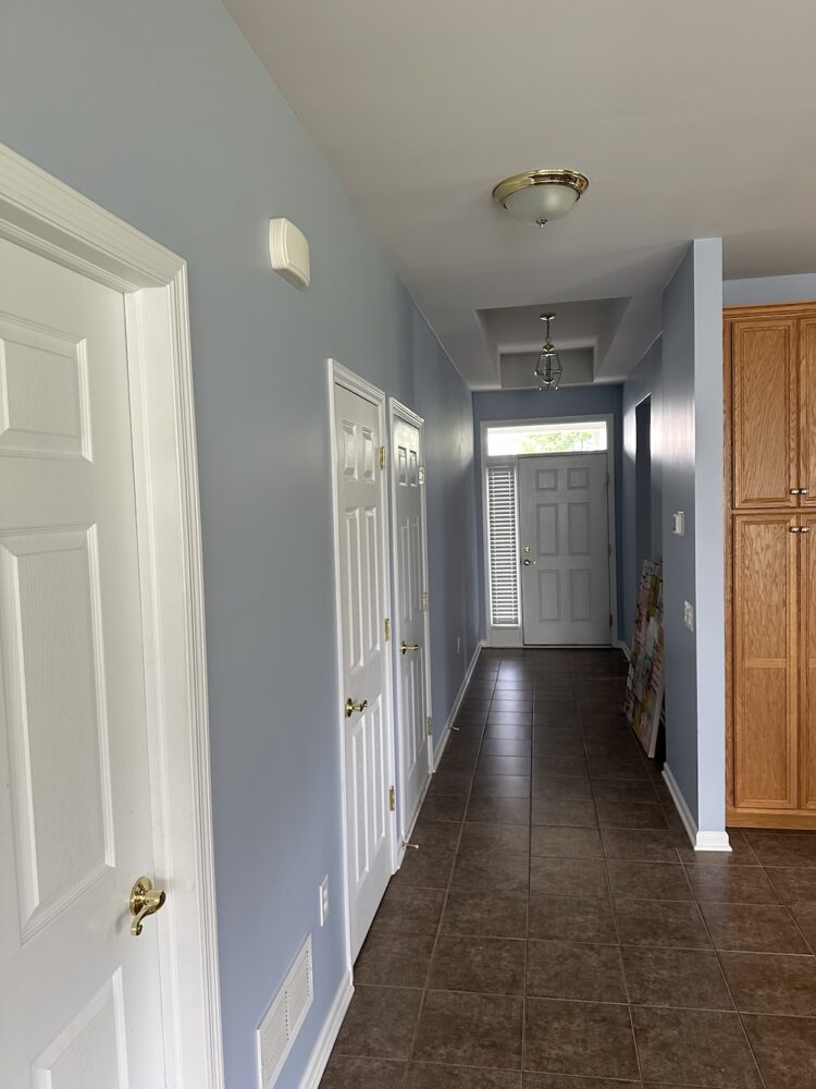 Our Mechanicsburg clients had just closed on their new house and were ready to turn it from “nice bones” into “dream home.” Before the flooring crew rolled in and the furniture arrived, they wanted the place painted top-to-bottom: walls, ceilings, oak cabinets, and a brand-new custom kitchen island. Oh, and did we mention they were juggling flooring, countertops, appliances, and trim installation at the same time? Nothing says “new home adventure” like five trades and one painter trying to share a schedule.