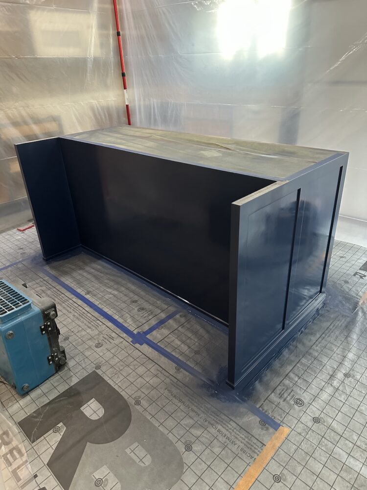 Before we set up our spray booth, we made sure to paint the hallway wall behind where it would stand — because once that booth was up, there’d be zero space left to reach it. Little details like that make the difference between a clean job and a “we’ll just pretend no one sees that spot” situation.